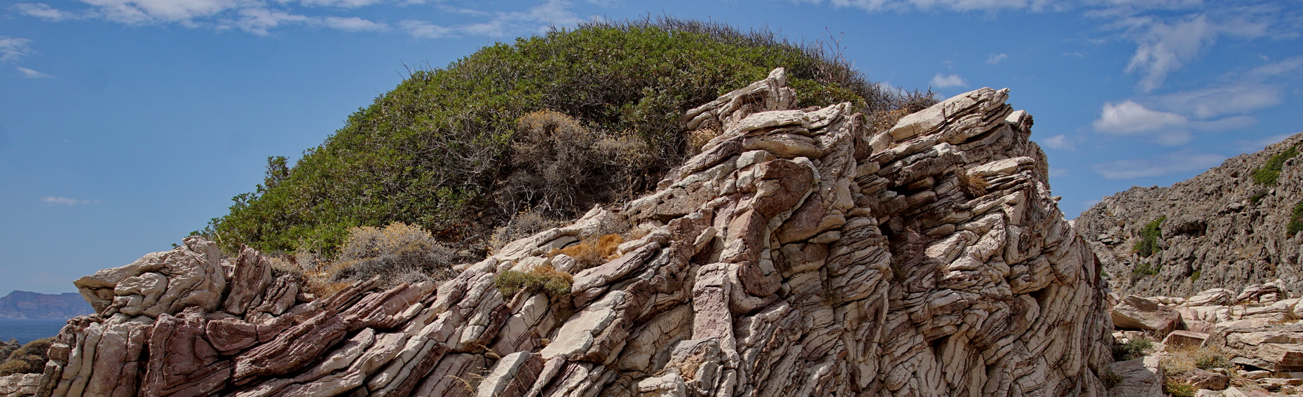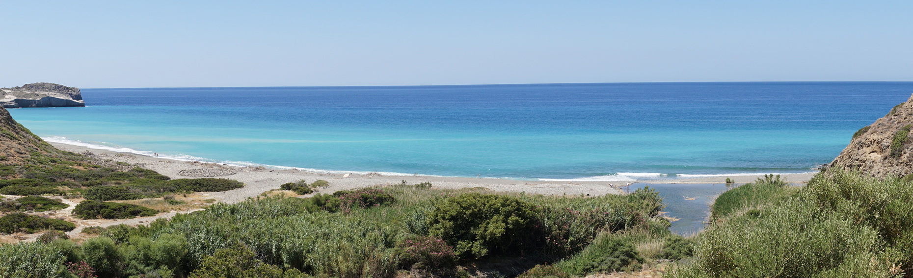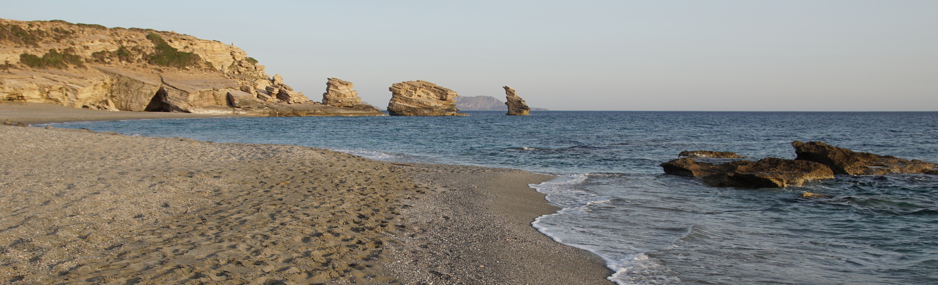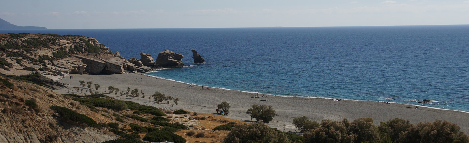 Triopetra bedeutet "Dreifachfelsen", diese Felsformation aus schräggeschichteten, plattenförmigen Sedimenten bildet das östlichen Ende der Bucht.Triopetra-Beach gehört zum Süden des Bezirkes Rethymnon / Akoumia, dort sind wir zu Hause!